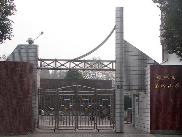 宣城市第四小学位于在宣城市区锦城南路46号,始建于1956年,学校占地约6900平方米,总建筑面积5297平方米。2008~2009学年度共有29个教学班,2119名学生。另辖两所村小(张锦小学、绿锦小学)13个教学班,377名学生。学校在编教师102人,其中,中学高级教师4人、小学高级教师84人;专科以上学历75人;市级骨干教师3人、教坛新星2人;区级学科带头人2人、骨干教师6人、教坛新星4人;市第三层次学术技术带头人3人;获全国优质课竞赛二等奖教师3人次。