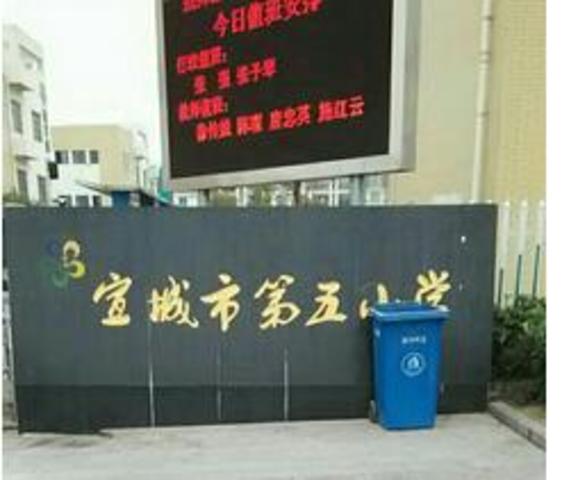 宣城市第五小学位于宣城市市区南市路41号,创建于二十世纪五十年代。 管辖济川办事处四所村小(玉山小学、东河小学已被拆并,现辖城东和东桥两所完小),现有学生数1300余人。学校有一支师德高尚、作风严谨、业务精湛、求实创新的优秀师资队伍。教职工总数76人,专科以 上学历70人,学历合格率100%,其中中学高级教师2人,小学高级教师60人。